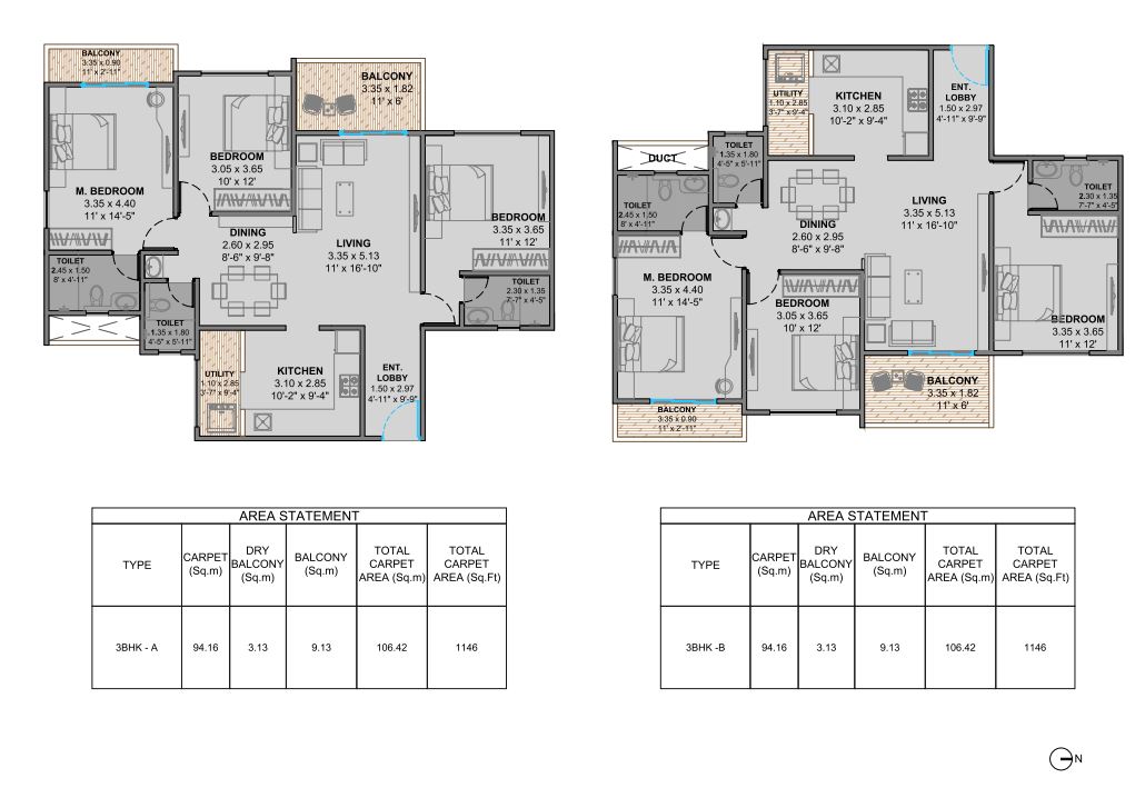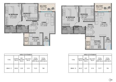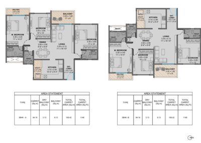 The 2 Bhk of Cloud 28 comprises spaces with an area ranging from 788 to 832 sq. ft., Additionally, 3 BHk offers spacious flats, each measuring approximately 1146 sq. ft.