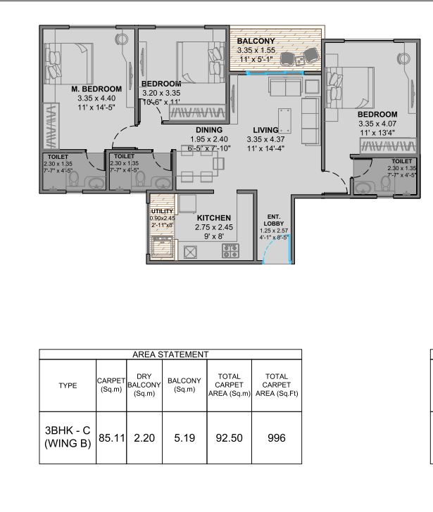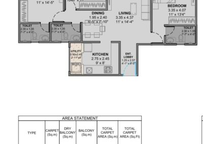 Oree Reality’s residential complex spans an expansive 3 acres and comprises three imposing structures, providing a sense of grandeur and space. The commitment to generous living spaces is evident in the expansive flats available in Cloud 28, with large bedrooms averaging around 14.5 x 11.0 feet.